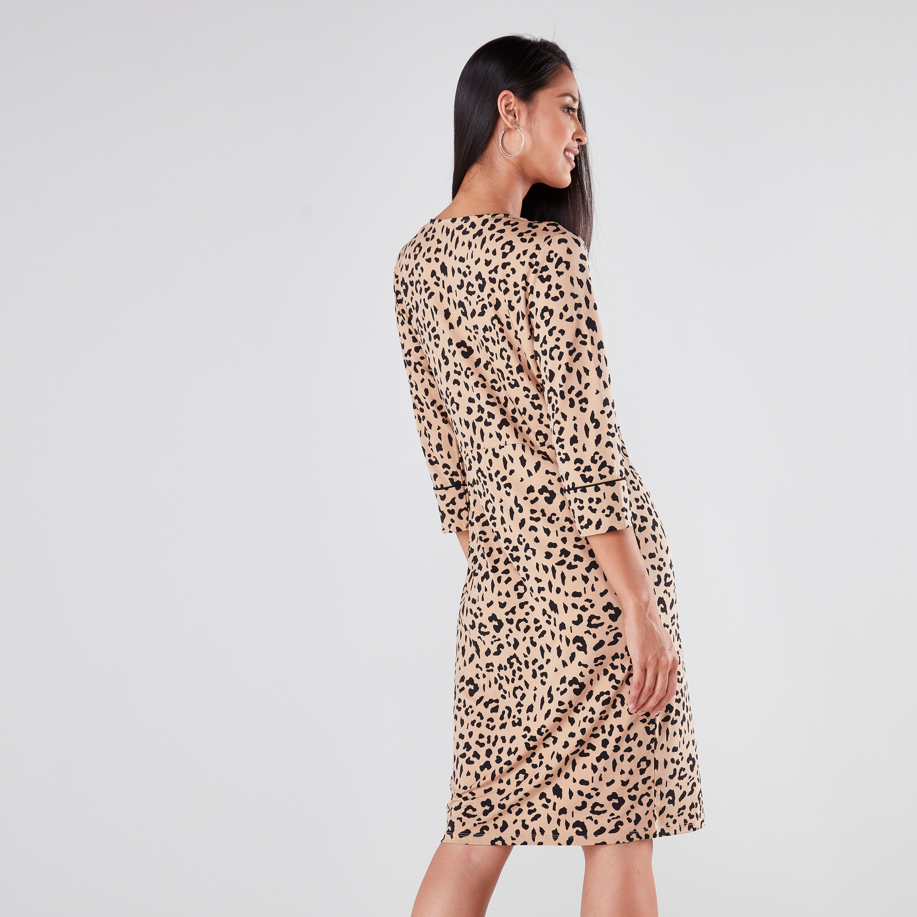Shop Animal Printed Midi Wrap Dress With 3 4 Sleeves Online Max Bahrain